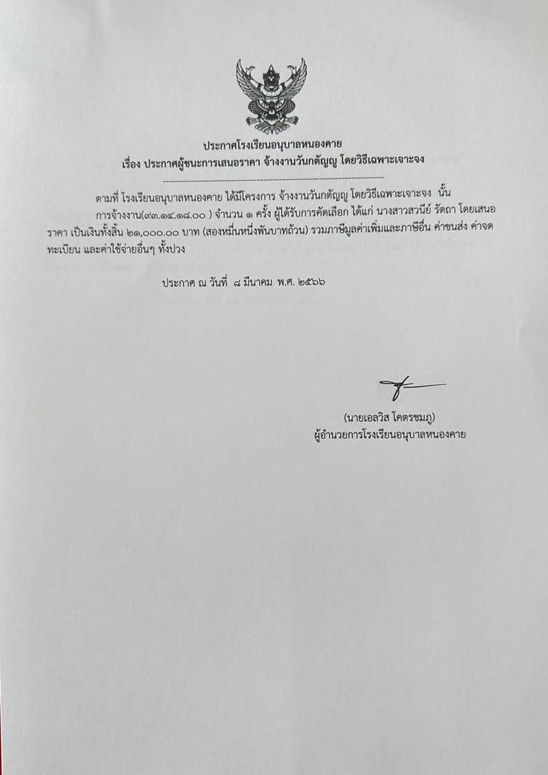 ประกาศผู้ชนะการเสนอราคา จ้างงานวันกตัญญู