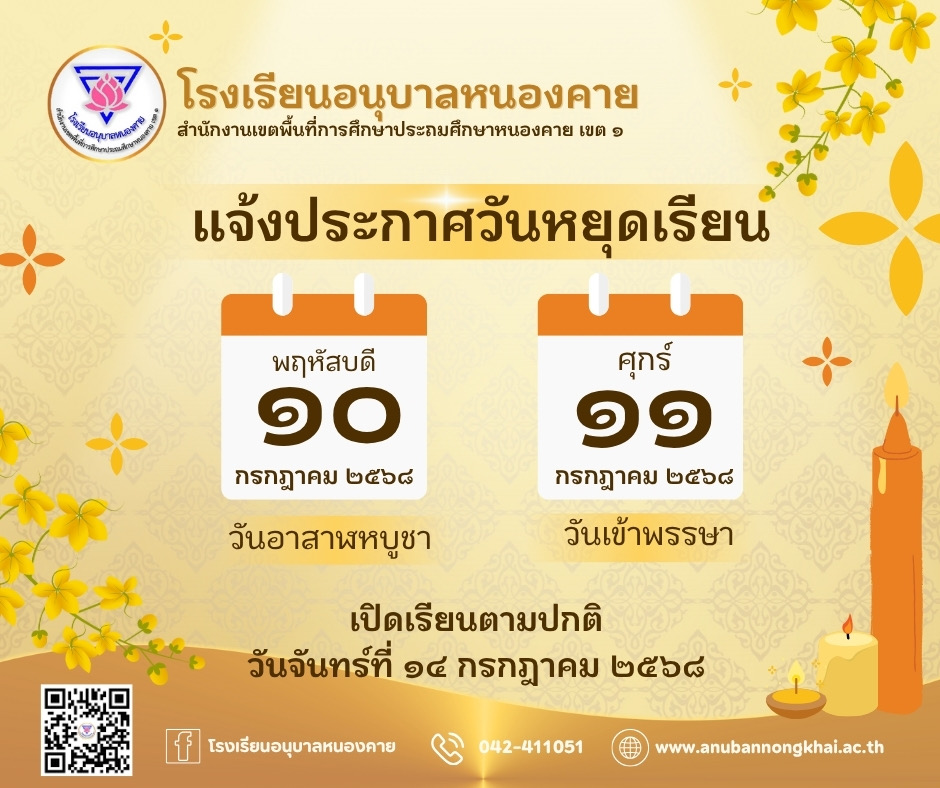 ประกาศโรงเรียนอนุบาลหนองคาย แจ้งประกาศหยุดเรียน